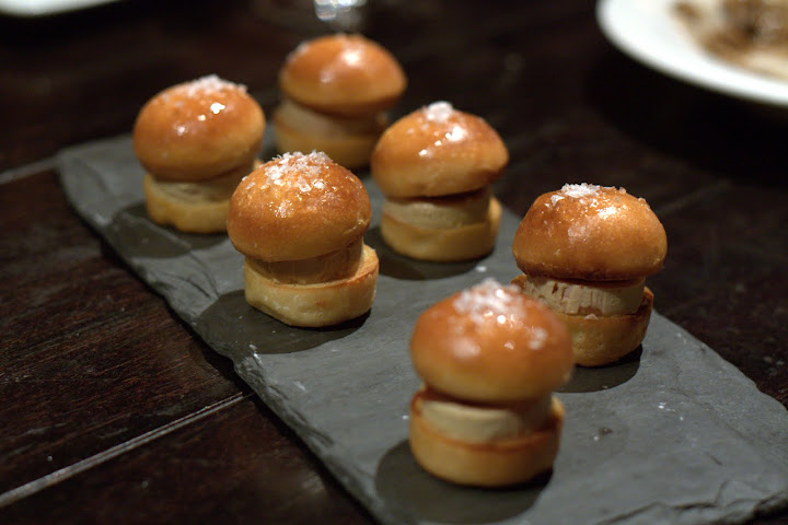 We heard many great things about the little sandwiches.  The foie gras sandwich was rich with fatty foie flavor, which was elevated with a light smattering of quince jam.  Quince is a fruit related to apples and pears.  There wasn't anything particularly distinct about the quince; it just tasted sweet.  The little buns were lightly toasted and sprinkled with some sea salt (a tad too much maybe?).  It was a good bite!