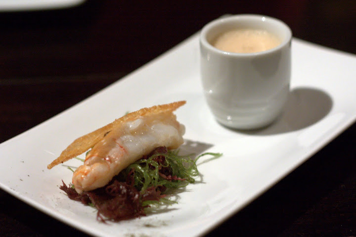 A real snooze this one.  The chips were pretty standard.  Something you could buy at your local grocery store.  I suppose they were trying to get interesting with the dip, which was no regular dip texture-wise.  They whipped up the yogurt so it had this airy fluffy texture.   I don't think any of the bites I got had much tamarind, but rather plenty of star anise.  I was not a fan.   Not the best way to start off the meal.